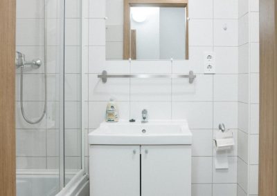 In the bathrooms: washbasin, shower tray, shower or bathtub with stall, toilet, liquid soap, towels, hairdryer, toilet paper.